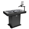 The DJ Podium Workstation accommodates various setups effortlessly and fits most professional DJ controllers, mixers or turntables.The removable plywood top plate allows two different setup options. DJs can either use a specific acrylic faceplate so compatible equipment is recessed into the podium, or leave the plywood top plate in place to position DJ equipment directly on top of the podium surface without recessed mounting. A variety of black glossy acrylic faceplates that are specifically designed for popular DJ controllers are sold separately.