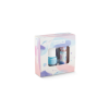 A delightful gift box including Namaki bestsellers, perfect for gifting. This set includes a Glitter Pink peach scented Lip Gloss, a Frosted Blue nail polish (28) & a temporary tattoo sheet.